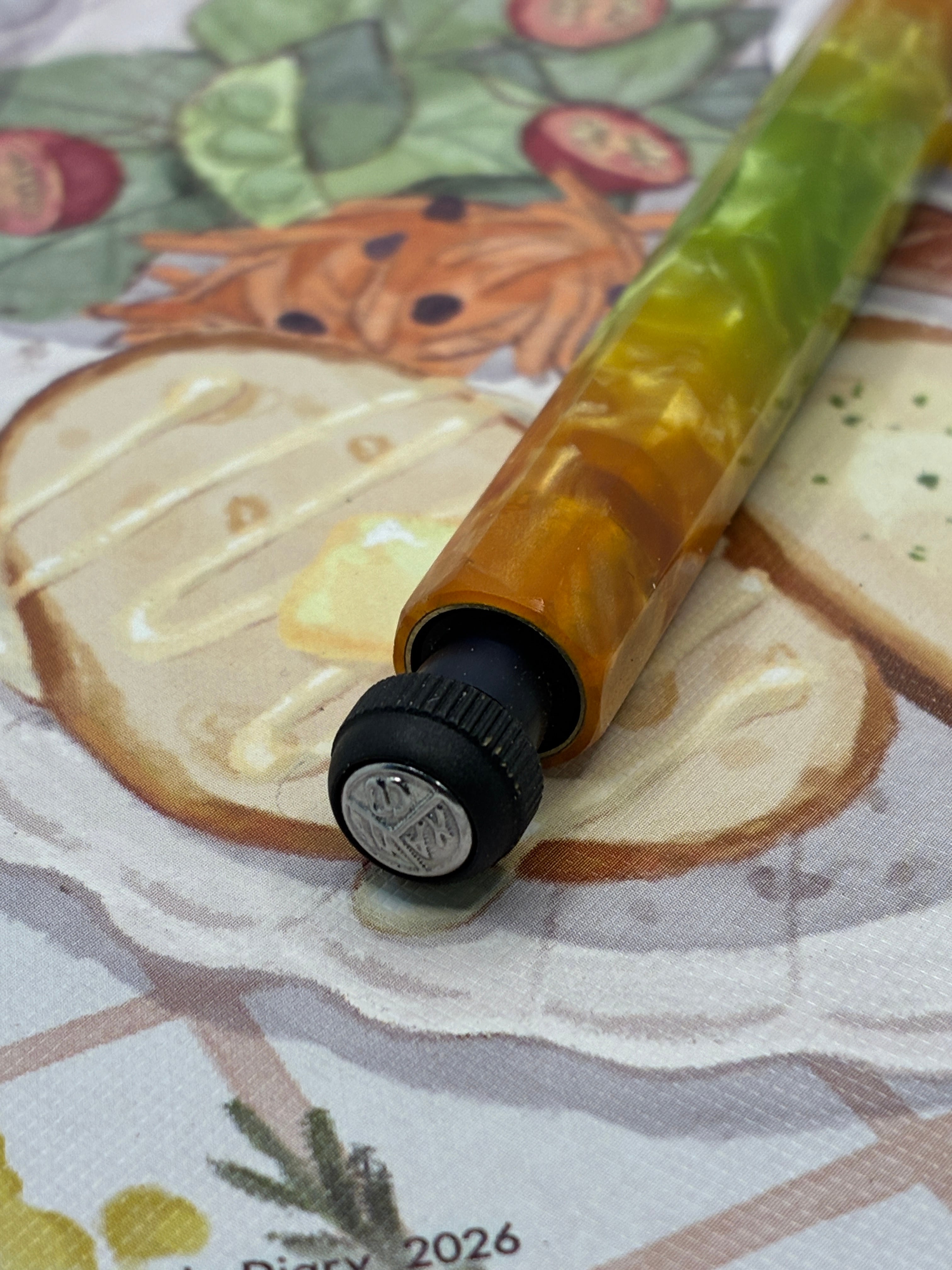 最新作として人気のカヴェコスペシャルの着せ替え軸アクリルクラッシュオレンジ、グリーンで